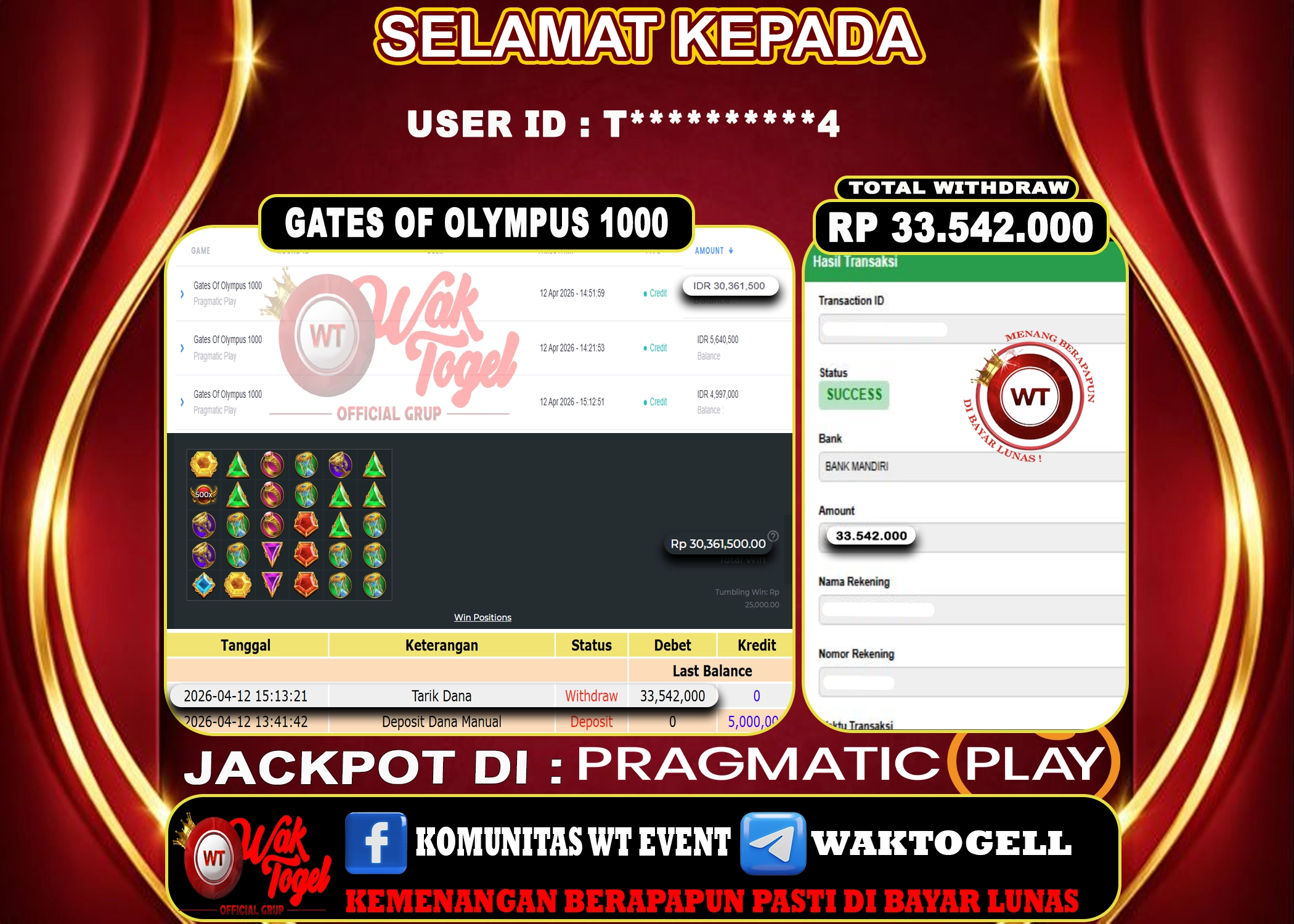 JACKPOT SLOT WAKTOGEL BUKTI PEMBAYARAN SLOT WAKTOGEL By JPWT April 15, 2026 0 comments 2 min read BUKTI PEMBAYARAN SLOT WAKTOGEL BUKTI PEMBAYARAN SLOT WAKTOGEL RP. 100,000,000 – GAME : SLOT WILD BOUNTY SHOWDOWN (USER ID : A******L) TANGGAL |15-04-2026| CASH LUNAS […]