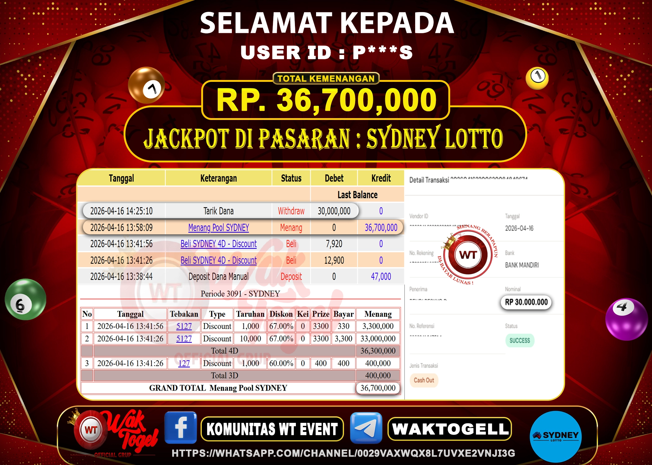 JACKPOT TOGEL WAKTOGEL BUKTI PEMBAYARAN SYDNEY LOTTO WAKTOGEL By JPWT April 16, 2026 0 comments 2 min read BUKTI PEMBAYARAN SYDNEY WAKTOGEL BUKTI PEMBAYARAN SYDNEY LOTTO WAKTOGEL RP. 36.700.000 – GAME : TOGEL SYDNEY LOTTO (USER ID : P***S) TANGGAL |16-04-2026| CASH LUNAS […]
