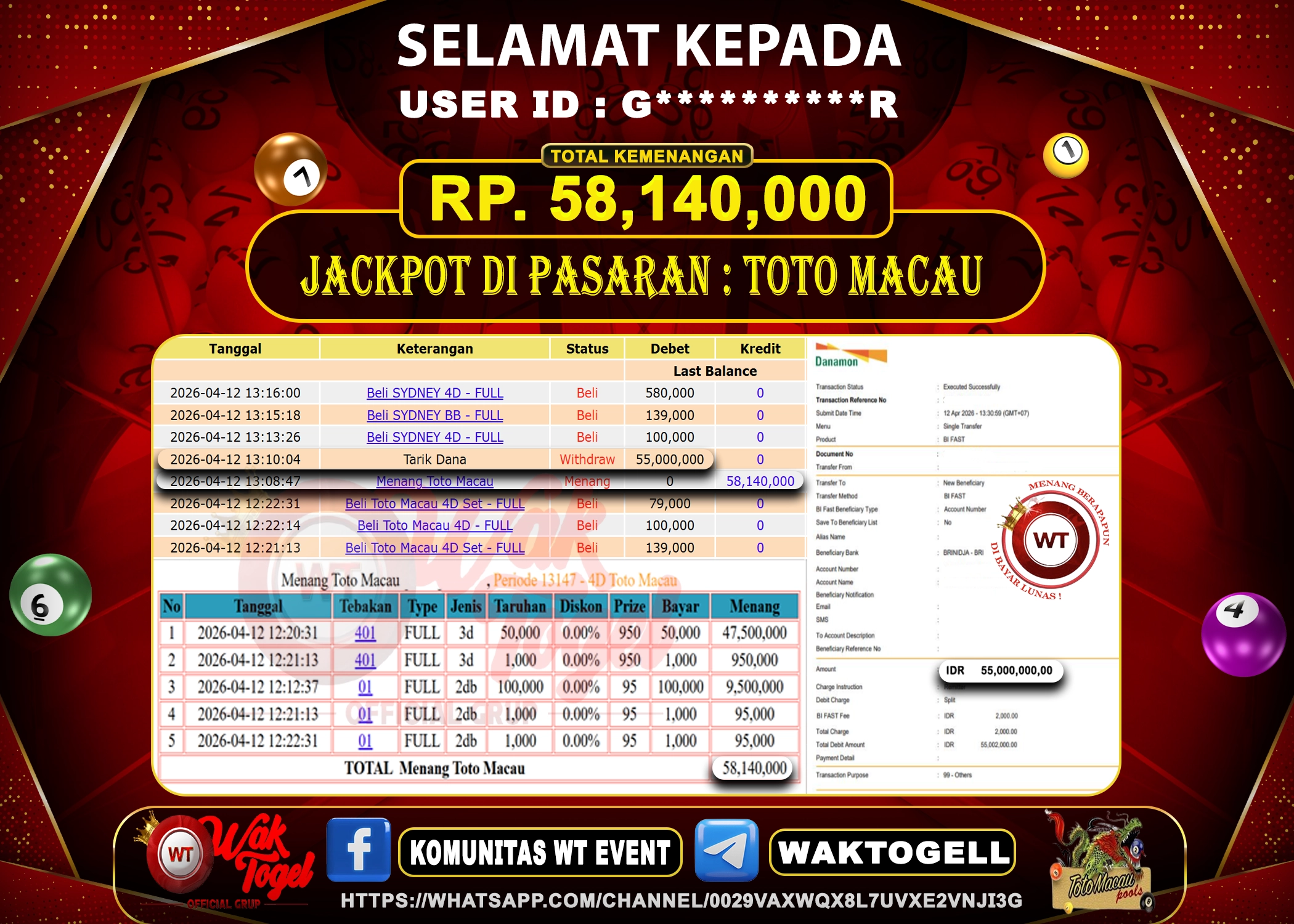 JACKPOT TOGEL WAKTOGEL BUKTI PEMBAYARAN TOTO MACAU 4D WAKTOGEL By JPWT April 12, 2026 0 comments 2 min read BUKTI PEMBAYARAN TOTO MACAU 4D WAKTOGEL BUKTI PEMBAYARAN TOTO MACAU 4D WAKTOGEL RP. 58,140,000 – GAME : TOGEL TOTO MACAU 4D (USER ID : G**********R) […]