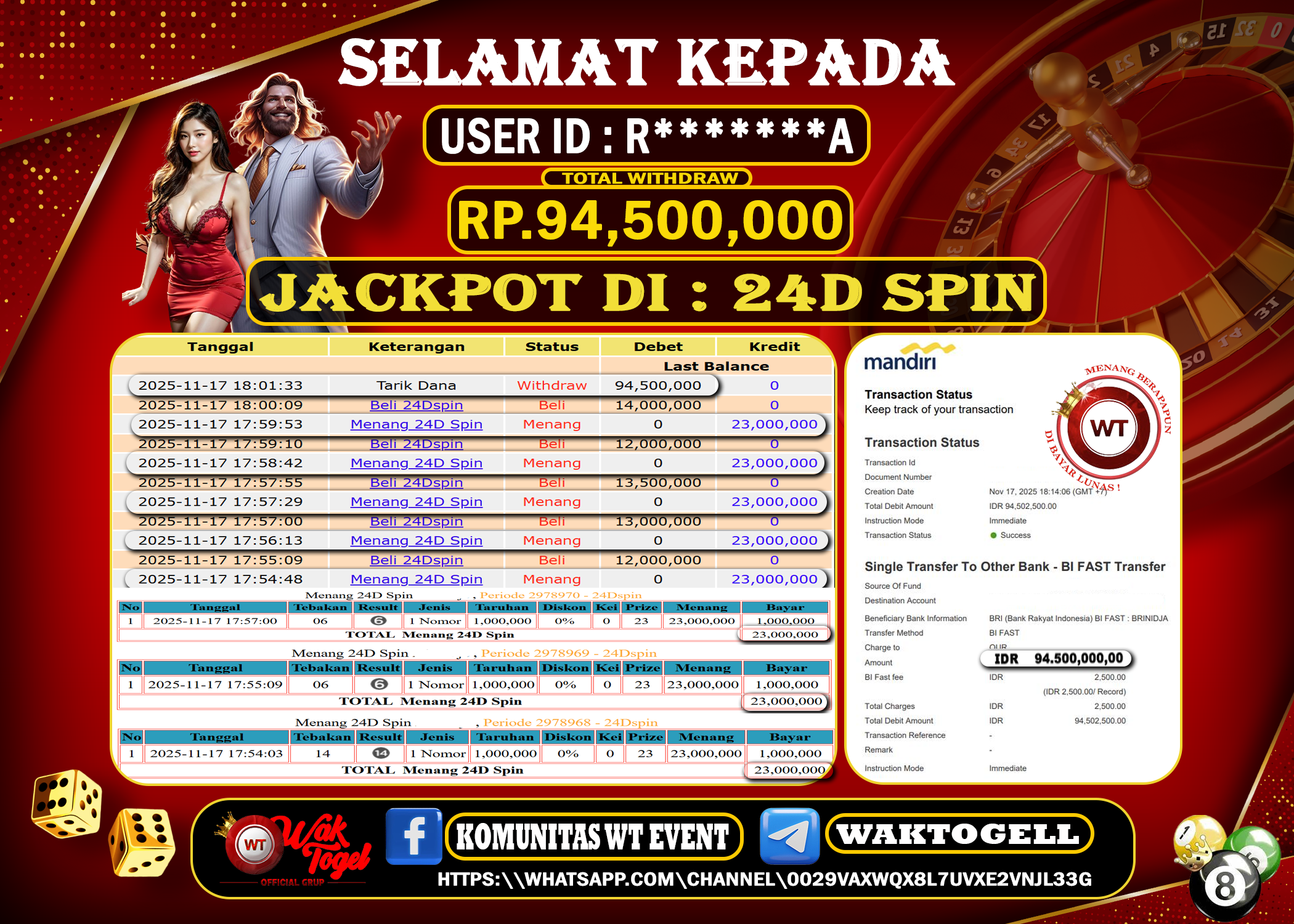 JACKPOT CASINO WAKTOGEL BUKTI PEMBAYARAN 24D SPIN WAKTOGEL By JPWT November 17, 2025 0 comments 2 min read BUKTI PEMBAYARAN MENANG 24D SPIN WAKTOGEL BUKTI PEMBAYARAN 24D GAMES WAKTOGEL RP.94.500.000 – GAME : CASINO 24D SPIN (USER ID : R*******A) TANGGAL |17-11-2025| CASH […]