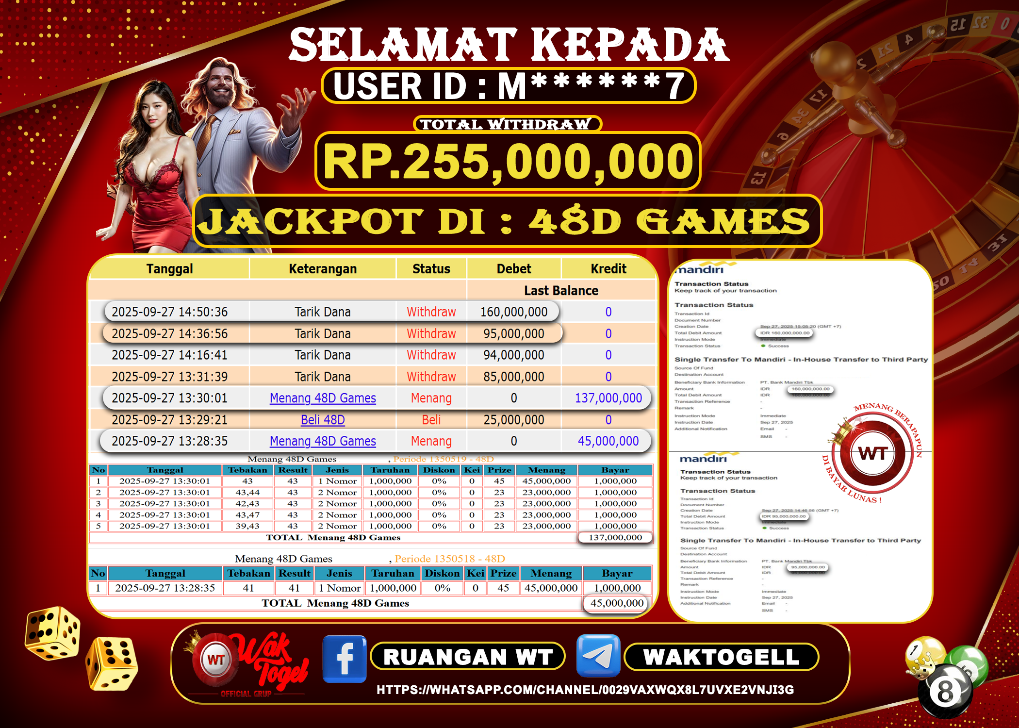 Bukti Pembayaran Jackpot Waktogel Untuk SLOT, TOGEL , LIVECASINO