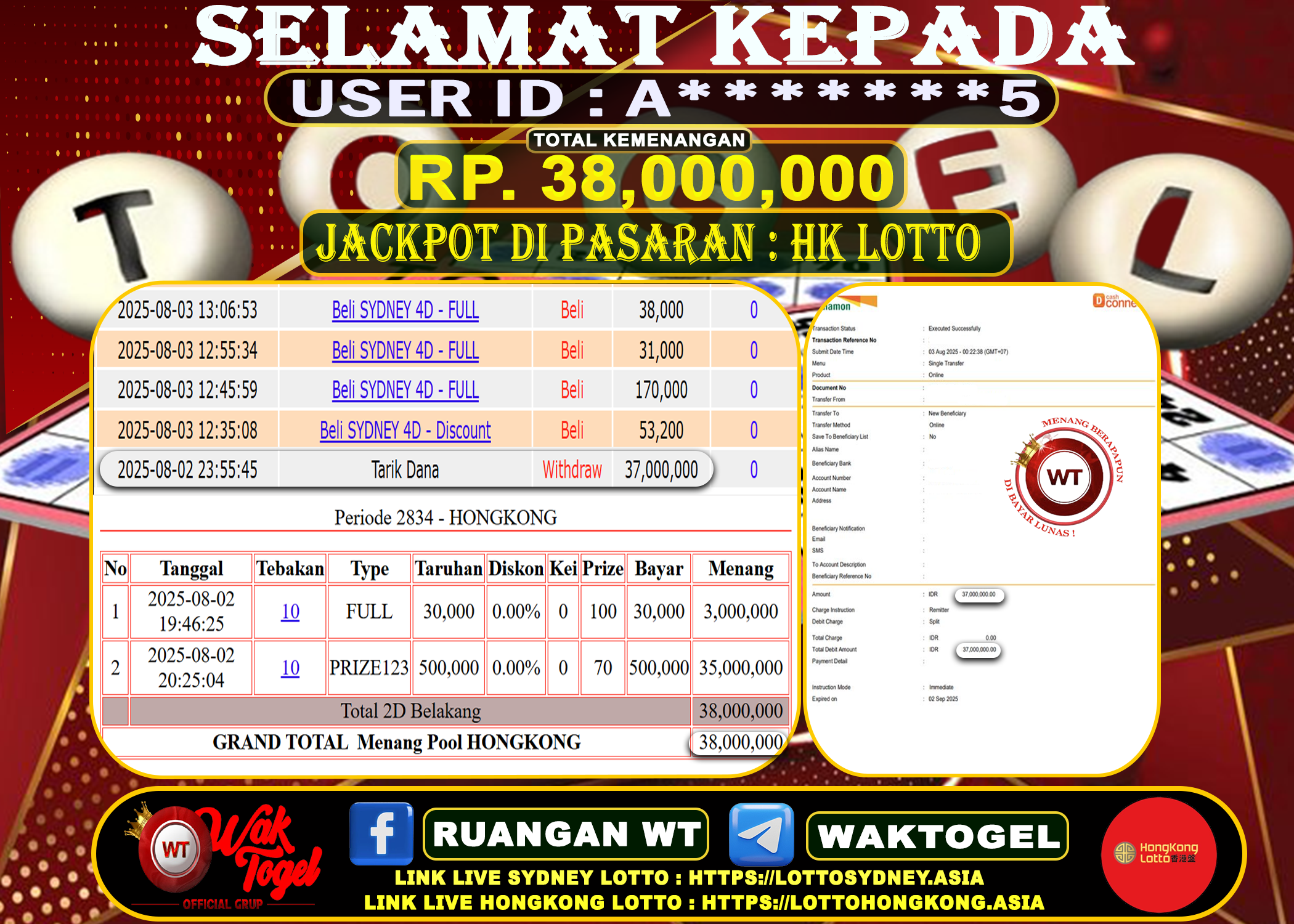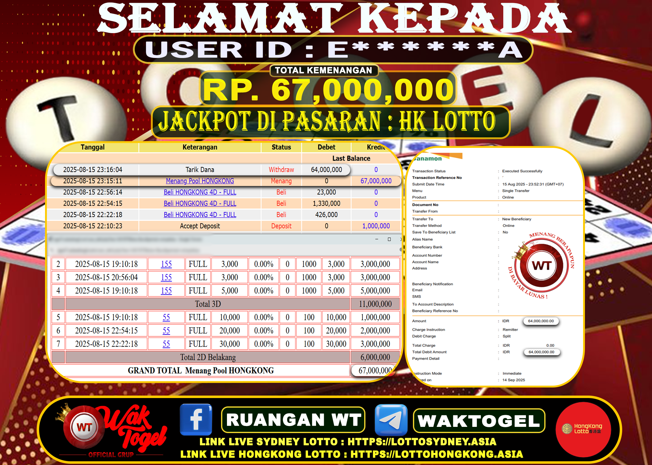 Bukti Pembayaran Jackpot Waktogel Untuk SLOT, TOGEL , LIVECASINO