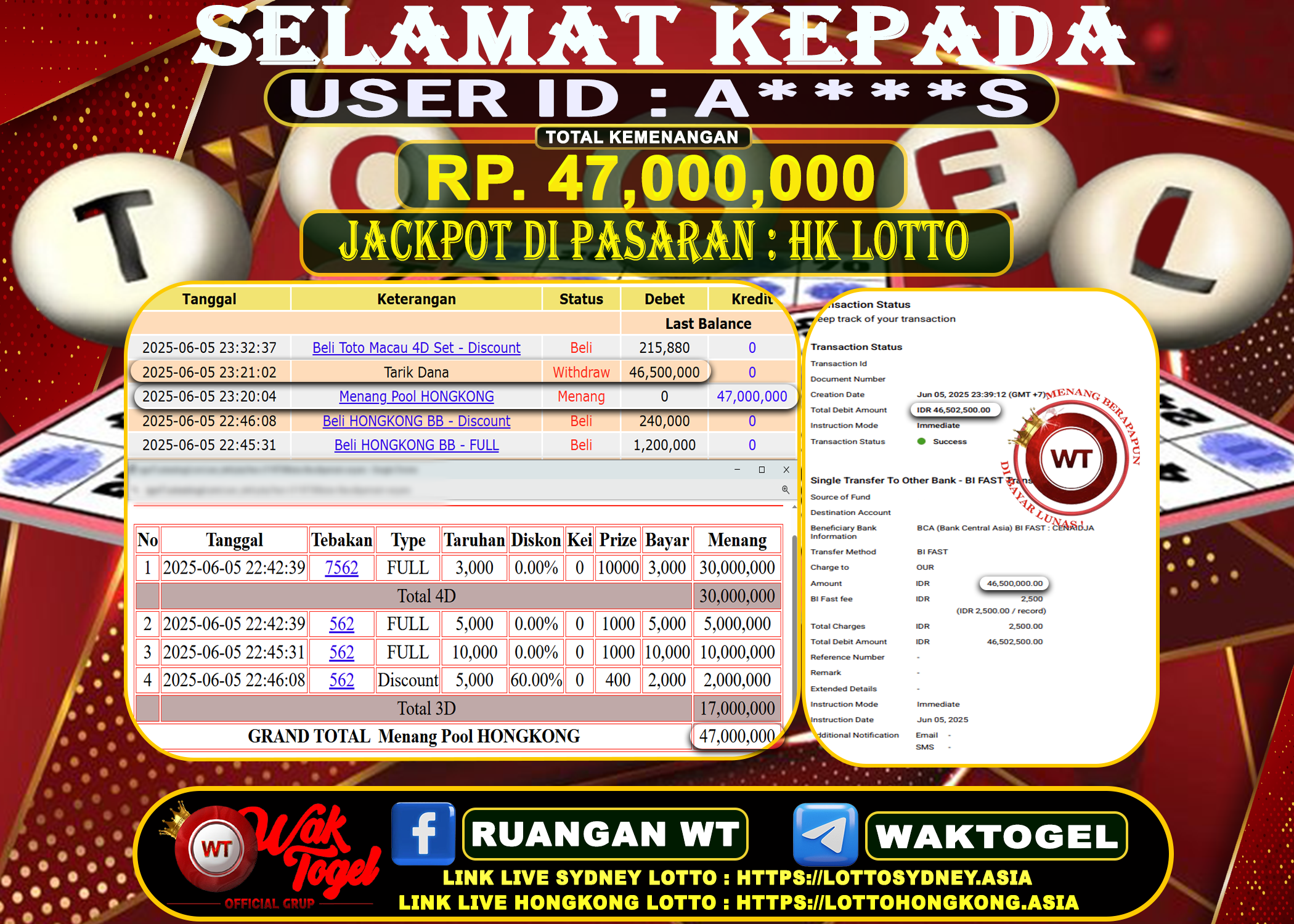 Bukti Pembayaran Jackpot Waktogel Untuk SLOT, TOGEL , LIVECASINO