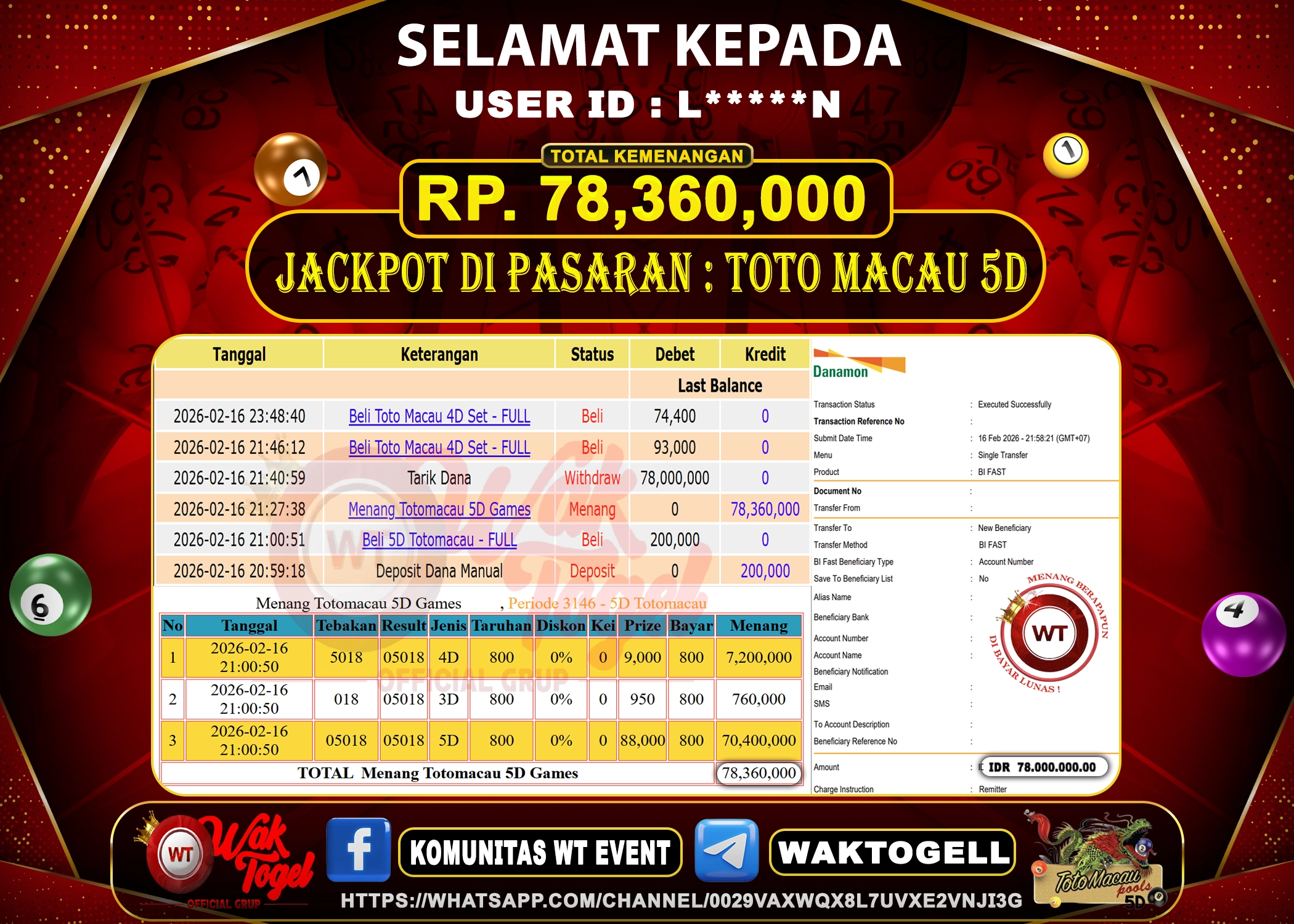 JACKPOT TOGEL WAKTOGEL BUKTI PEMBAYARAN TOTO MACAU 5D WAKTOGEL By JPWT Februari 17, 2026 0 comments 2 min read BUKTI PEMBAYARAN TOTO MACAU 5D WAKTOGEL BUKTI PEMBAYARAN TOTO MACAU 5D WAKTOGEL RP. 78,360,000 – GAME : TOGEL TOTO MACAU 5D GAMES (USER ID : […]