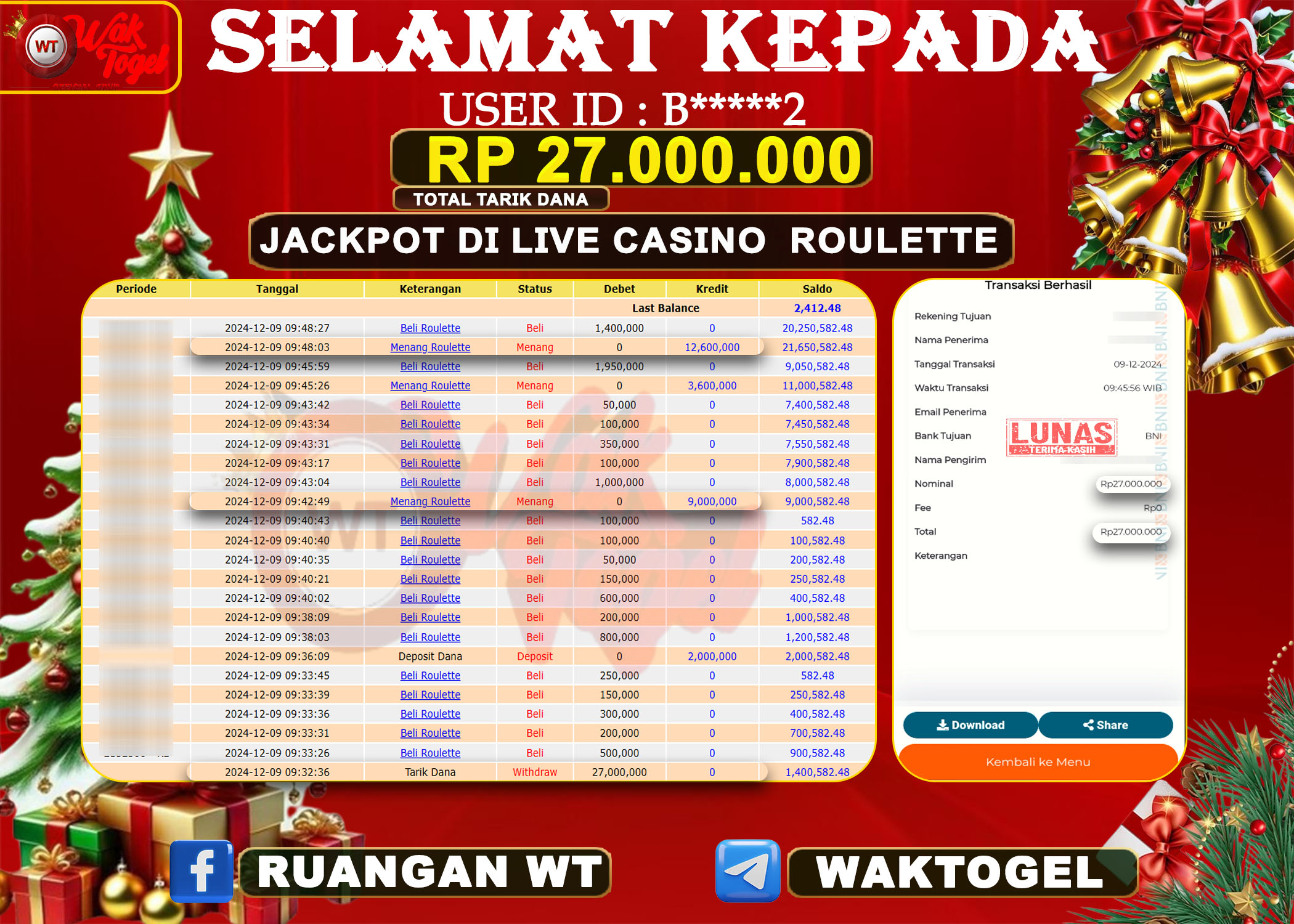 JACKPOT TOGEL WAKTOGEL BUKTI PEMBAYARAN ROULETTE WAKTOGEL By JPWT Desember 9, 2024 0 comments 2 min read BUKTI PEMBAYARAN ROULETTE WAKTOGEL BUKTI PEMBAYARAN ROULETTE WAKTOGEL RP. 27.000.000 – GAME : ROULETTE (USER ID : B*****2) TANGGAL |09-12-2024| CASH LUNAS ! Kami ucapkan […]