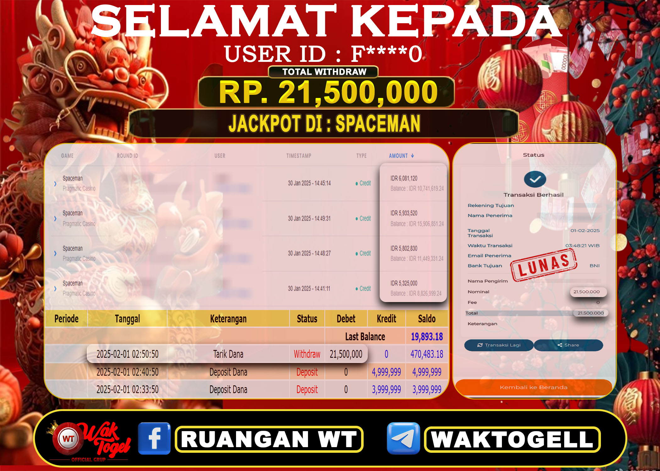 Bukti Pembayaran Jackpot Waktogel Untuk SLOT, TOGEL , LIVECASINO