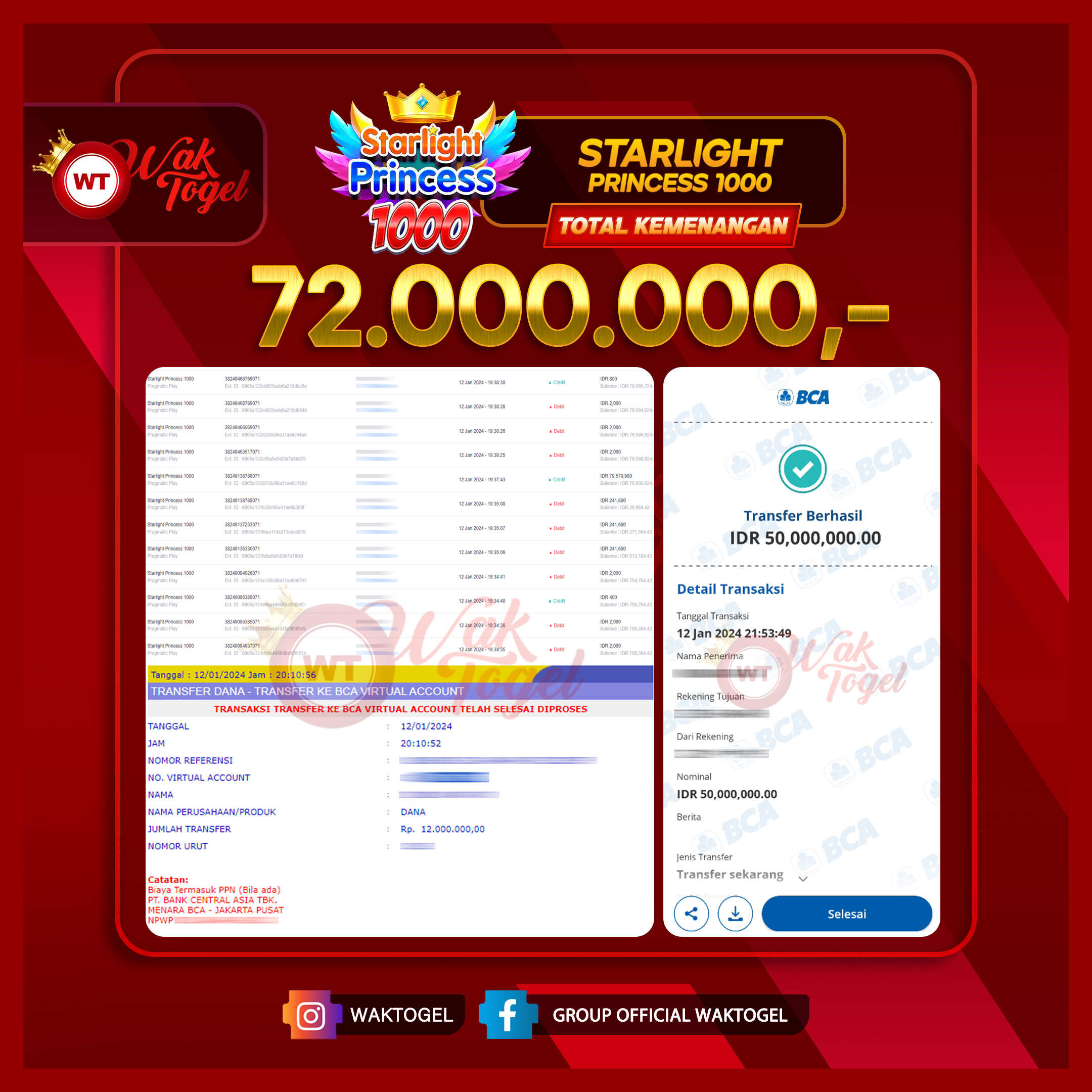 JACKPOT SLOT WAKTOGEL BUKTI PEMBAYARAN SLOT WAKTOGEL By JPWT Januari 13, 2024 0 comments 2 min read BUKTI PEMBAYARAN SLOT WAKTOGEL BUKTI PEMBAYARAN SLOT WAKTOGEL RP. 72.000.000 – GAME : SLOT STARLIGHT PRINCESS 1000 TANGGAL (USER ID : A******7) |12-01-2024| CASH LUNAS […]