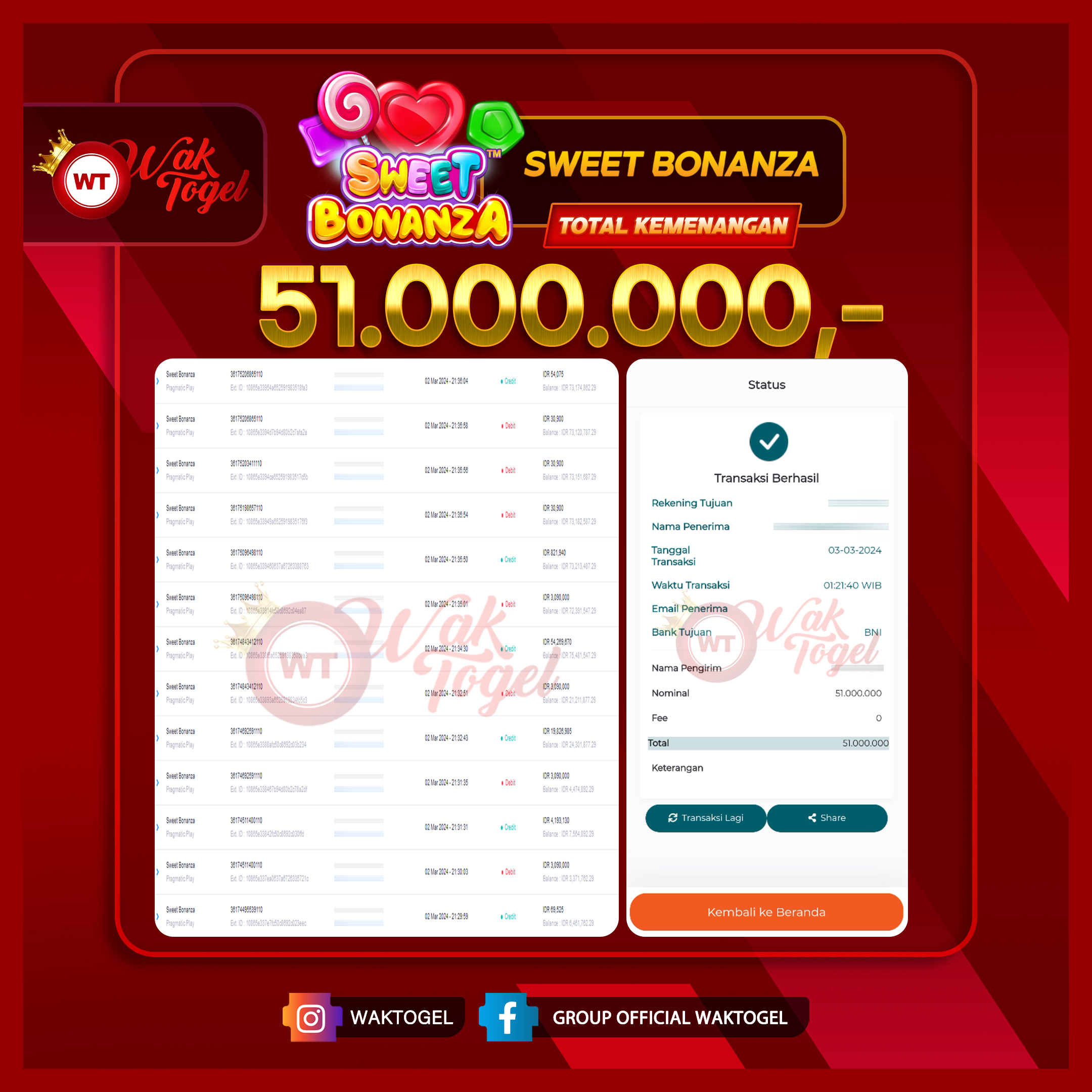 JACKPOT SLOT WAKTOGEL BUKTI PEMBAYARAN SLOT WAKTOGEL By JPWT Februari 11, 2024 0 comments 2 min read BUKTI PEMBAYARAN SLOT WAKTOGEL BUKTI PEMBAYARAN SLOT WAKTOGEL RP. 51.000.000 – GAME : SLOT SWEET BONANZA TANGGAL (USER ID : D*****0) |10-02-2024| CASH LUNAS ! […]