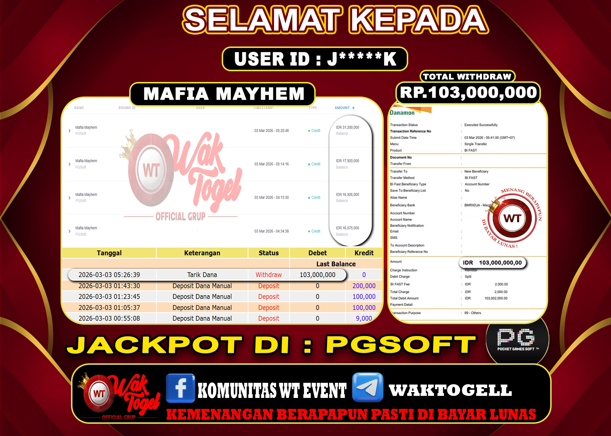 JACKPOT SLOT WAKTOGEL BUKTI PEMBAYARAN SLOT WAKTOGEL By JPWT Maret 3, 2026 0 comments 2 min read BUKTI PEMBAYARAN SLOT WAKTOGEL BUKTI PEMBAYARAN SLOT WAKTOGEL RP. 103,000,000 – GAME : SLOT MAFIA MAYHEM (USER ID : J*****K) TANGGAL |03-03-2026| CASH LUNAS ! […]