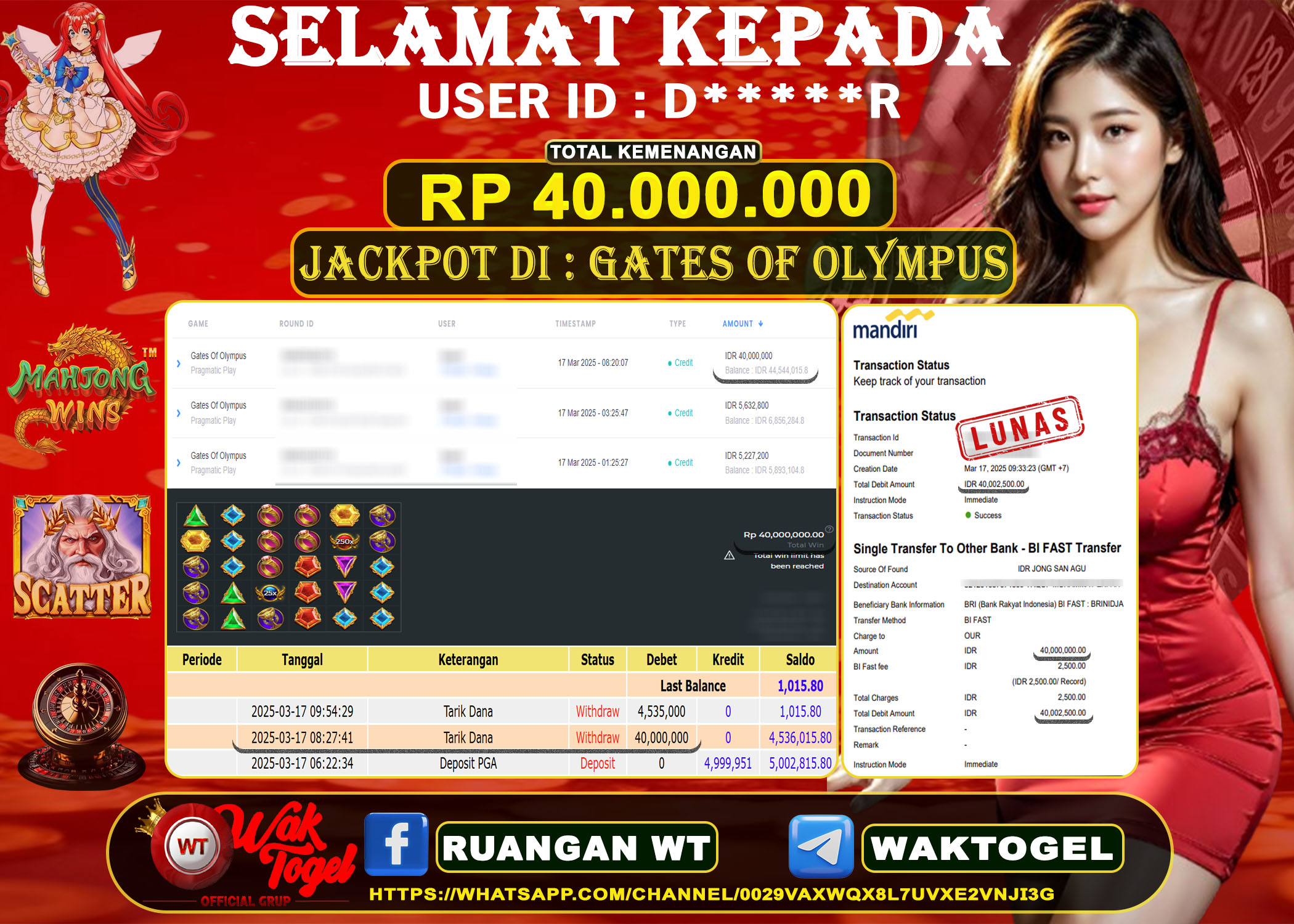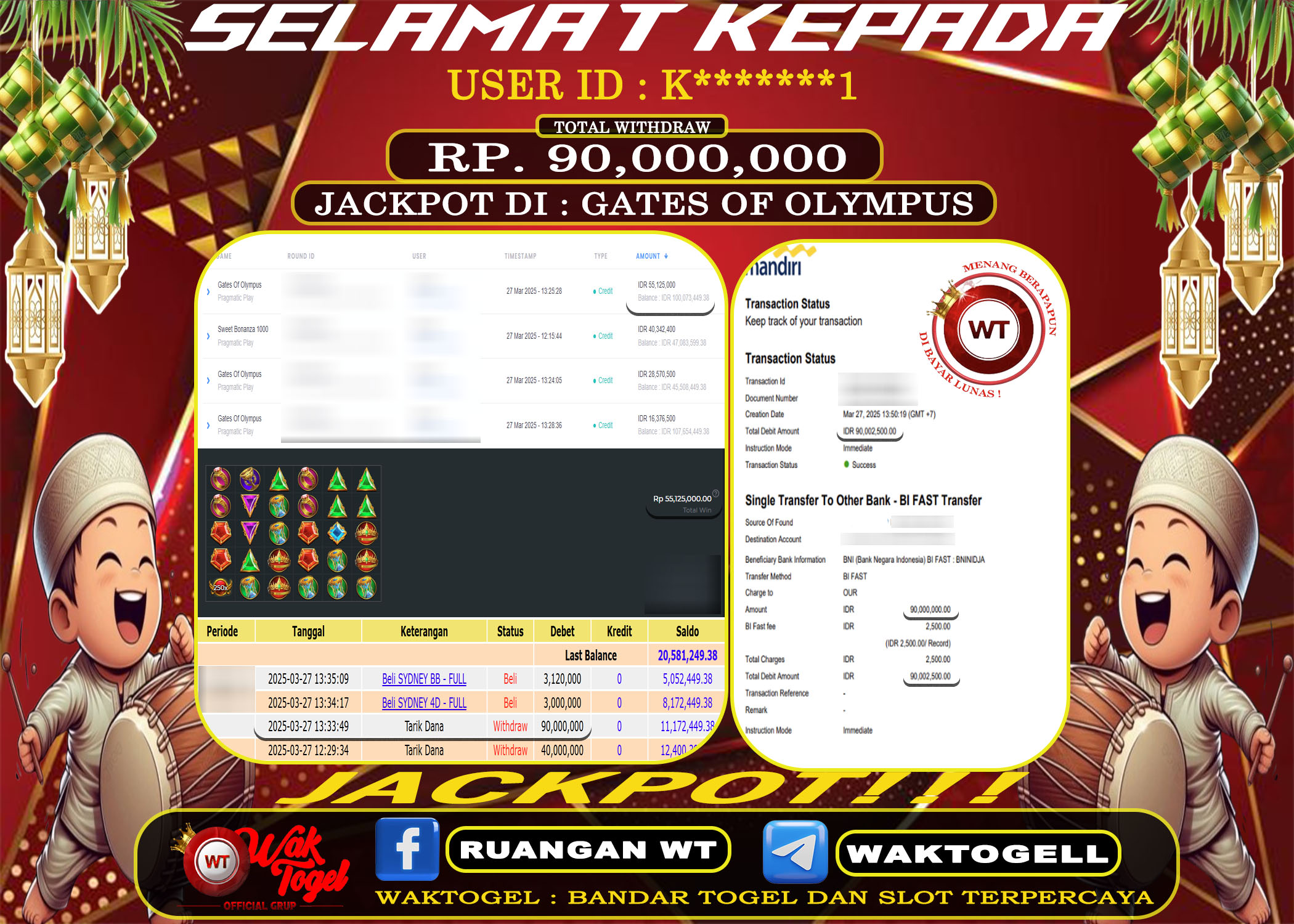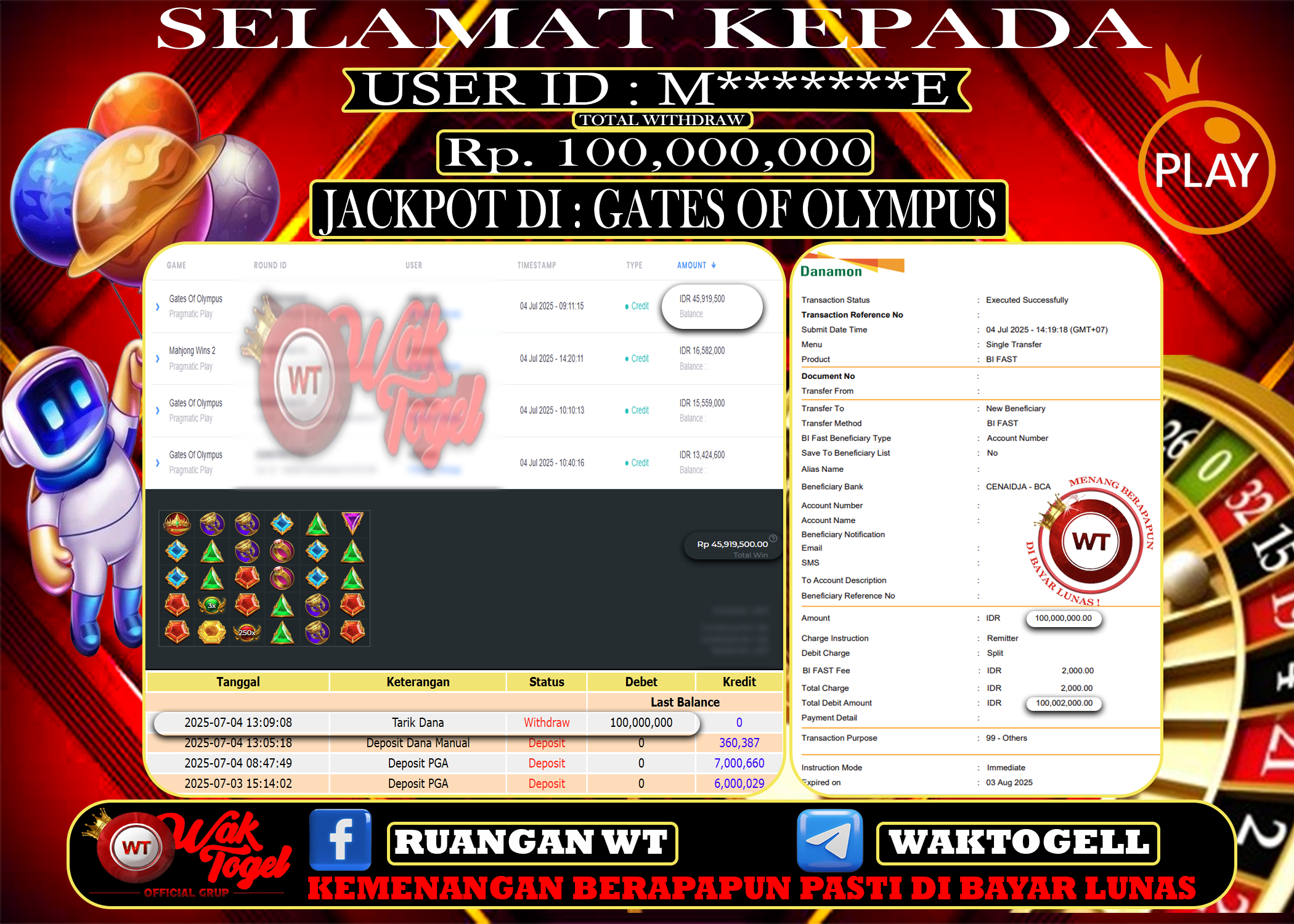Bukti Pembayaran Jackpot Waktogel Untuk SLOT, TOGEL , LIVECASINO
