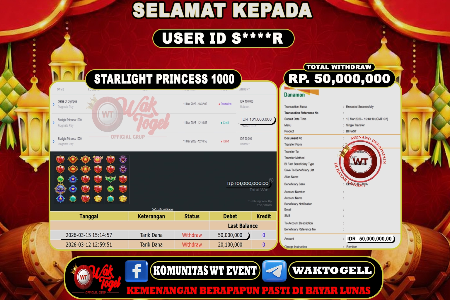 JACKPOT SLOT WAKTOGEL BUKTI PEMBAYARAN SLOT WAKTOGEL By JPWT Maret 15, 2026 0 comments 2 min read BUKTI PEMBAYARAN SLOT WAKTOGEL BUKTI PEMBAYARAN SLOT WAKTOGEL RP. 50.000.000 – GAME : SLOT STARLIGHT PRINCESS 1000 (USER ID : S****R) TANGGAL |15-03-2026| CASH LUNAS […]