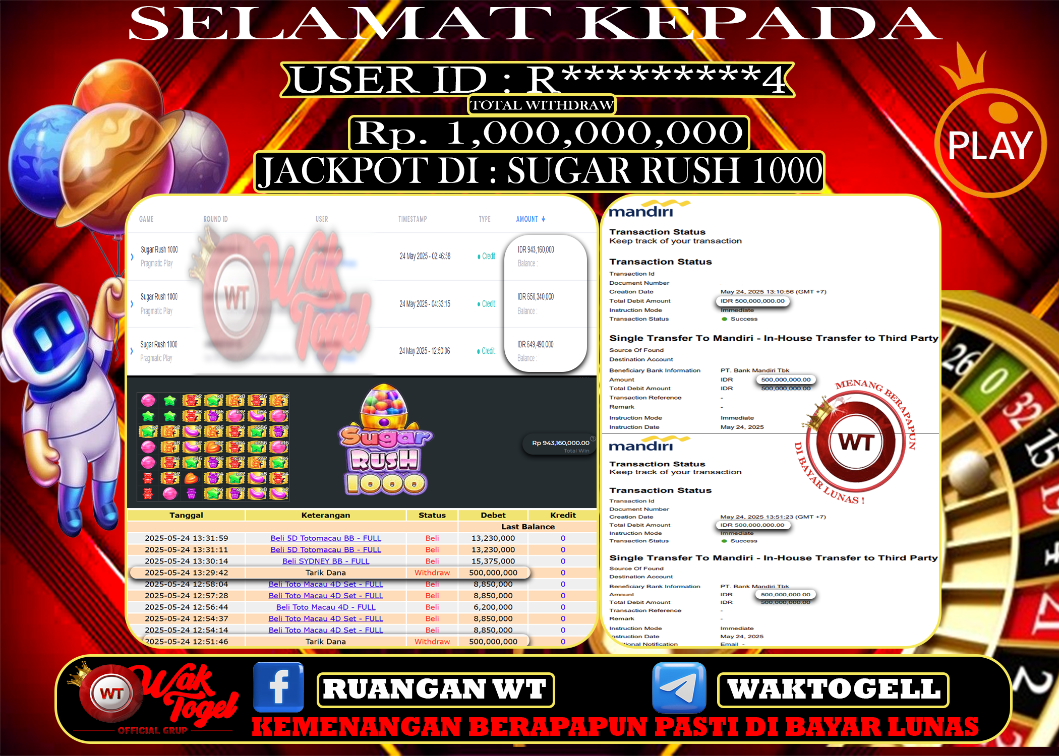 JACKPOT SLOT WAKTOGEL BUKTI PEMBAYARAN SLOT WAKTOGEL By JPWT Mei 24, 2025 0 comments 2 min read BUKTI PEMBAYARAN SLOT WAKTOGEL BUKTI PEMBAYARAN SLOT WAKTOGEL RP. 1,000,000,000 – GAME : SLOT SUGAR RUSH 1000 (USER ID : R*********4) TANGGAL |24-05-2025| CASH LUNAS […]