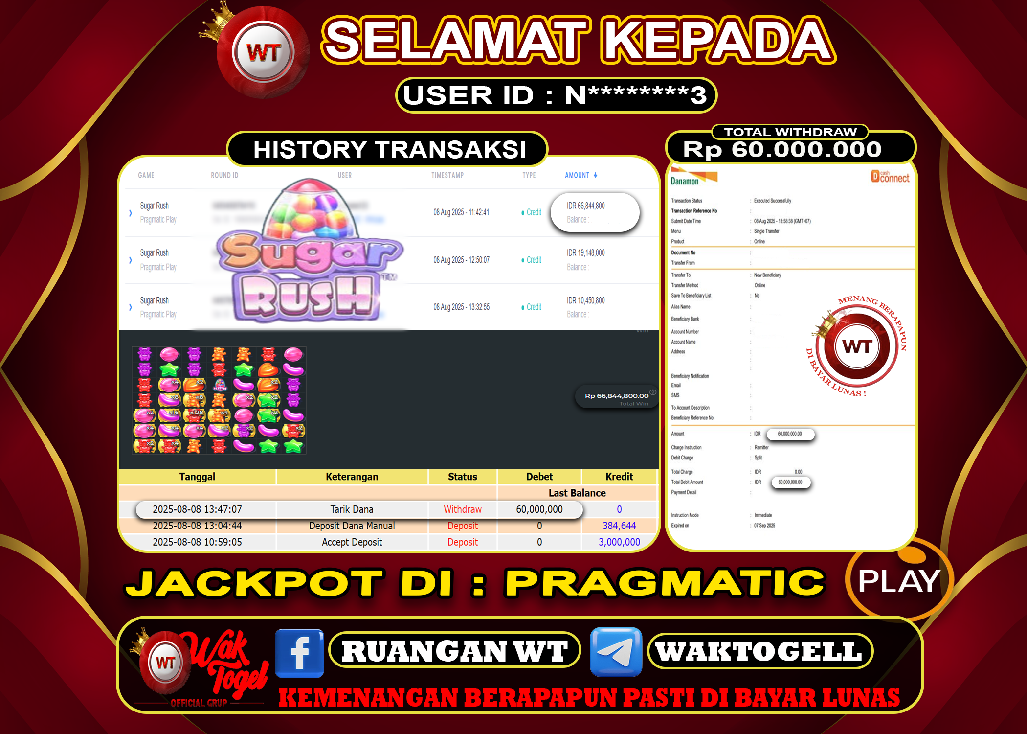 JACKPOT SLOT WAKTOGEL BUKTI PEMBAYARAN SLOT WAKTOGEL By JPWT Agustus 8, 2025 0 comments 2 min read BUKTI PEMBAYARAN SLOT WAKTOGEL BUKTI PEMBAYARAN SLOT WAKTOGEL RP. 60,000,000 – GAME : SLOT SUGAR RUSH (USER ID : N********3) TANGGAL |08-08-2025| CASH LUNAS ! […]