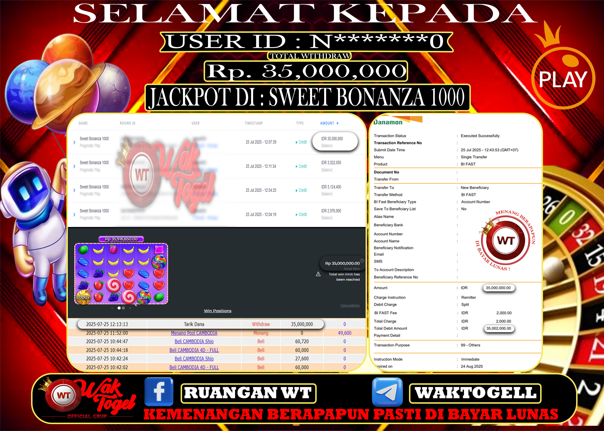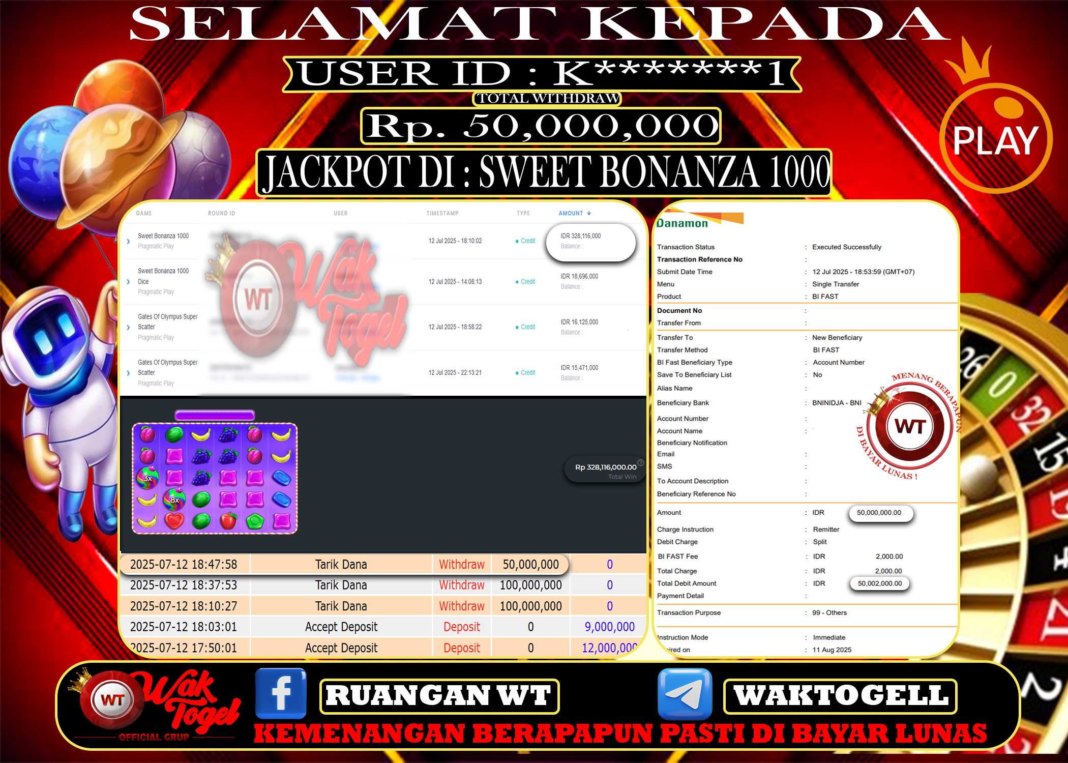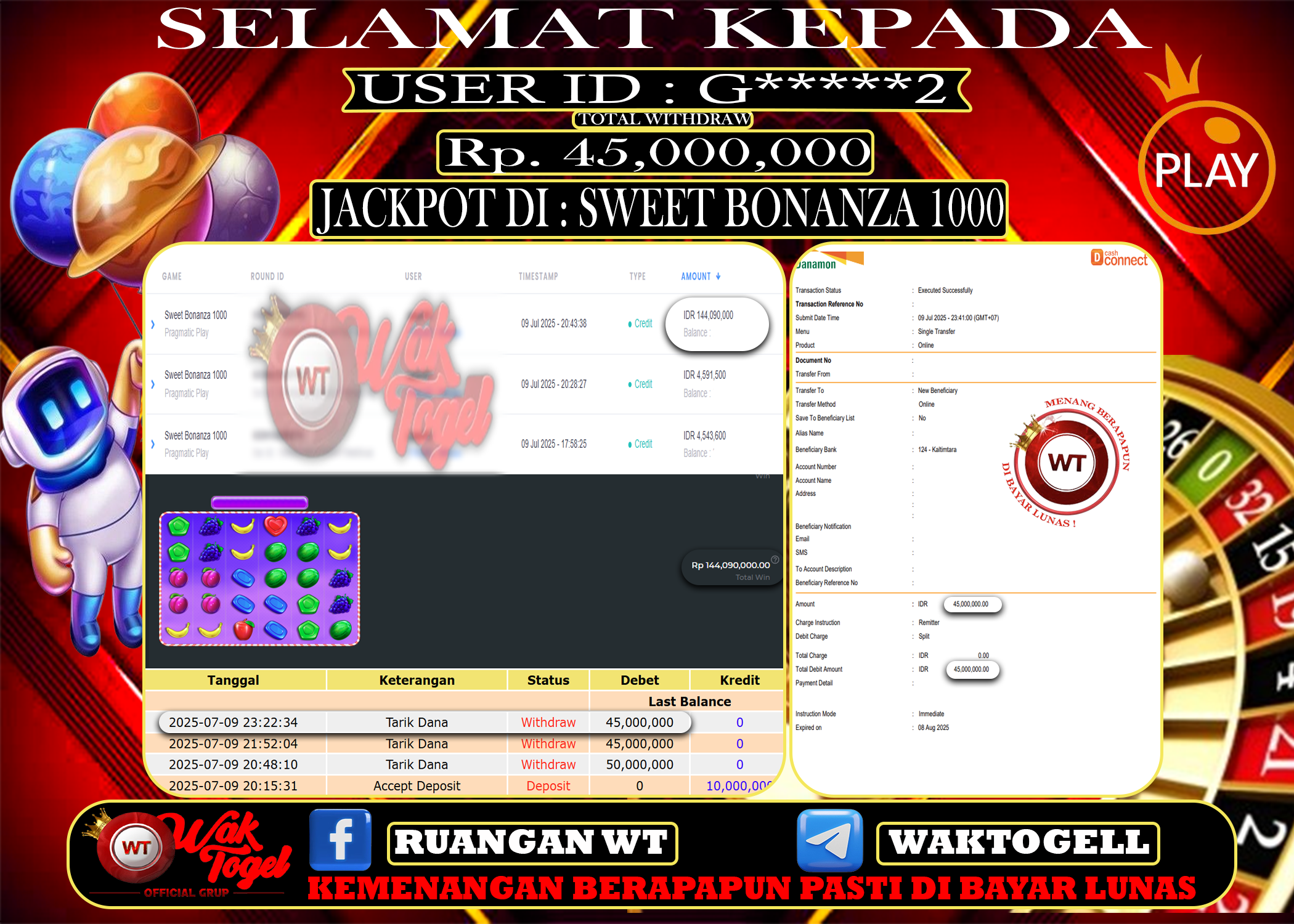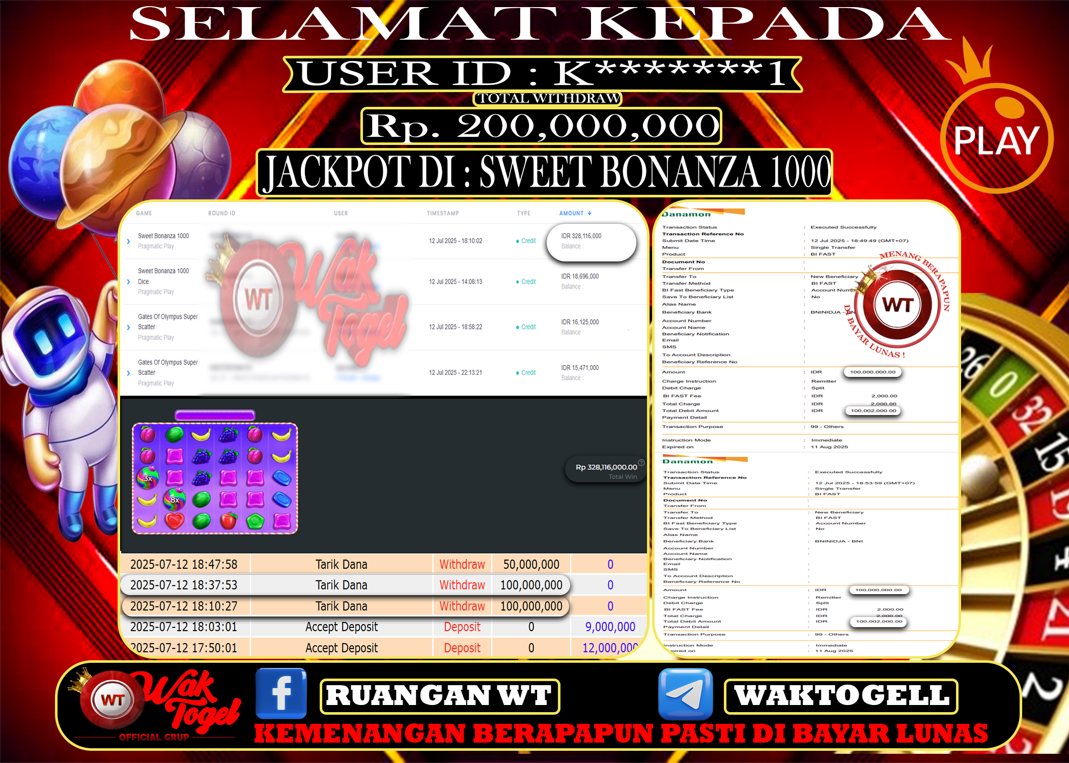 Bukti Pembayaran Jackpot Waktogel Untuk SLOT, TOGEL , LIVECASINO