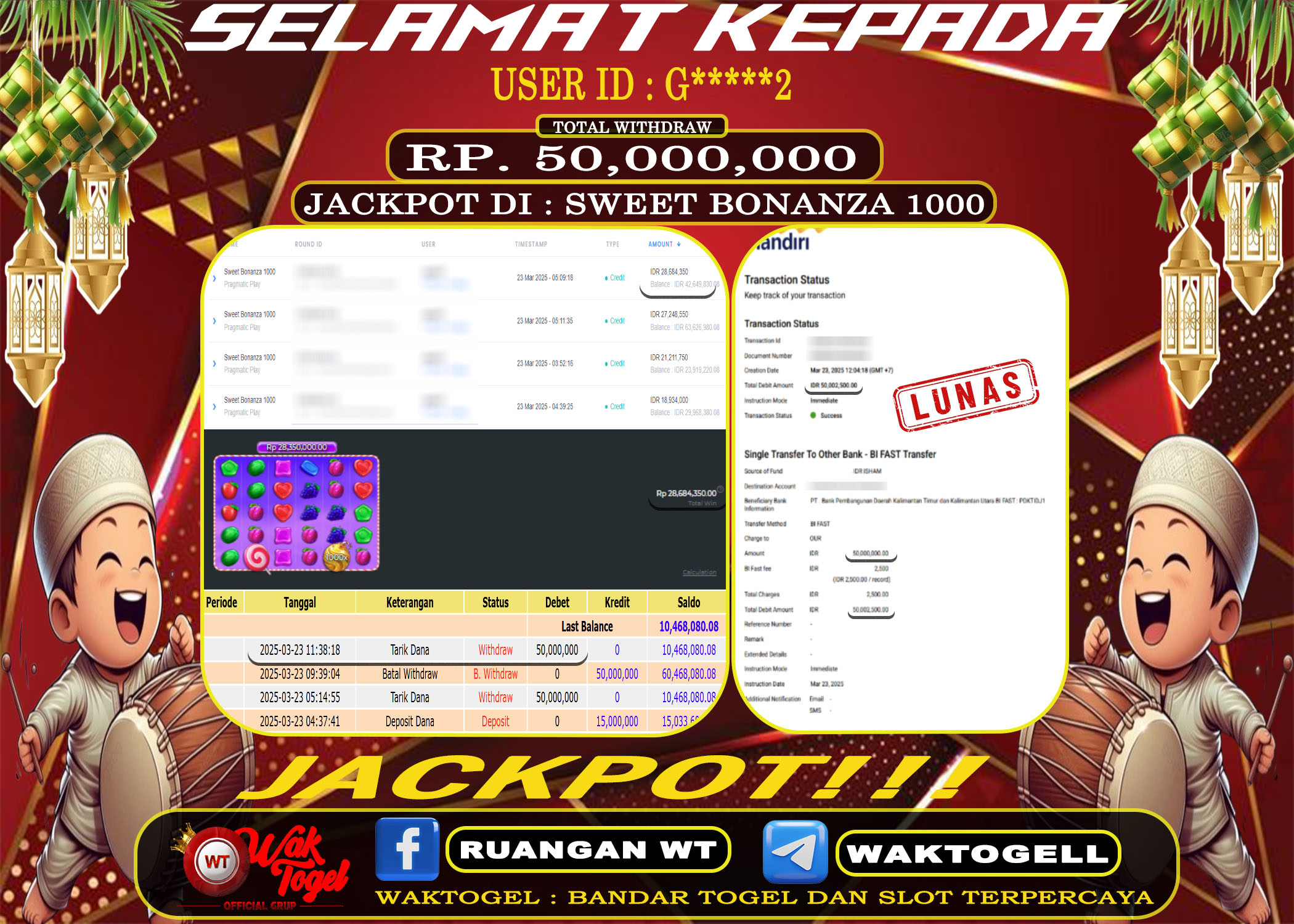 JACKPOT SLOT WAKTOGEL BUKTI PEMBAYARAN SLOT WAKTOGEL By JPWT Maret 23, 2025 0 comments 2 min read BUKTI PEMBAYARAN SLOT WAKTOGEL BUKTI PEMBAYARAN SLOT WAKTOGEL RP. 50,000,000 – GAME : SLOT SWEET BONANZA 1000 (USER ID : G*****2) TANGGAL |23-03-2025| CASH LUNAS […]