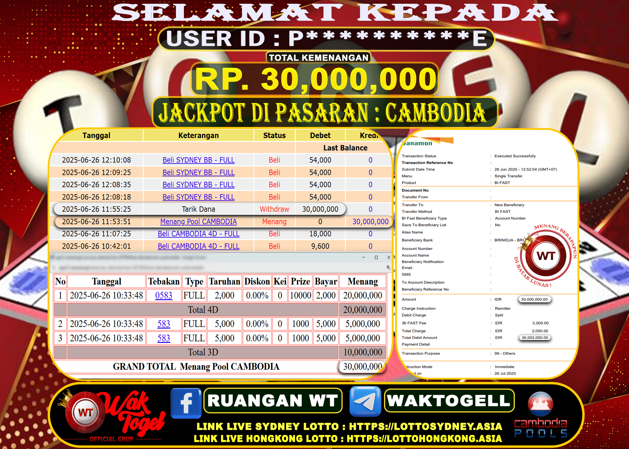 JACKPOT SLOT WAKTOGEL BUKTI PEMBAYARAN CAMBODIA WAKTOGEL By JPWT Juni 26, 2025 0 comments 2 min read BUKTI PEMBAYARAN CAMBODIA WAKTOGEL BUKTI PEMBAYARAN CAMBODIA WAKTOGEL RP. 30,000,000 – GAME : TOGEL CAMBODIA POOLS (USER ID : P**********E) TANGGAL |26-06-2025| CASH LUNAS! Kami […]