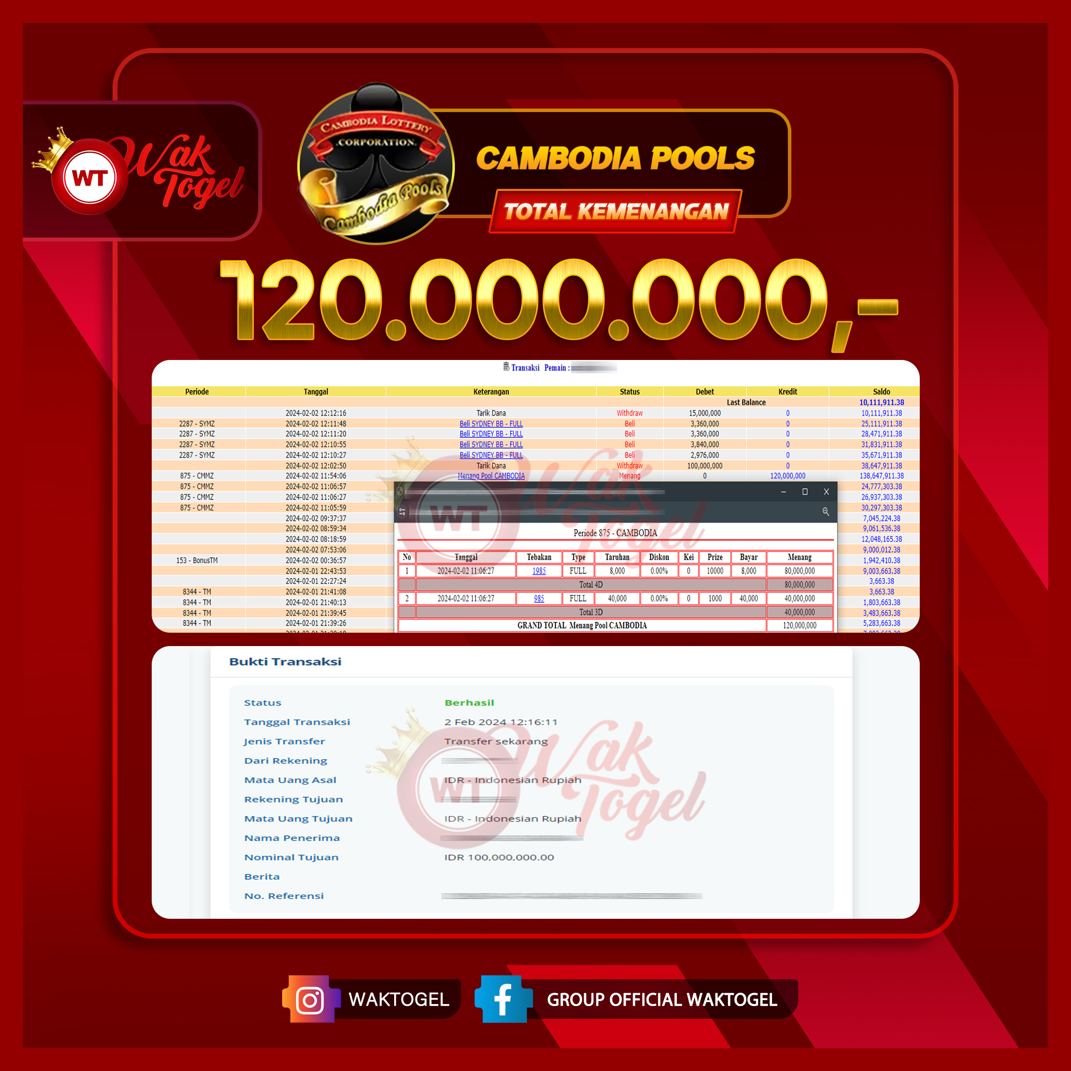 JACKPOT TOGEL WAKTOGEL BUKTI PEMBAYARAN CAMBODIA WAKTOGEL By JPWT Februari 2, 2024 0 comments 2 min read BUKTI PEMBAYARAN CAMBODIA WAKTOGEL BUKTI PEMBAYARAN CAMBODIA WAKTOGEL RP. 120.000.000 – GAME : TOGEL CAMBODIA POOLS TANGGAL (USER ID : K*****1) |02-02-2024| CASH LUNAS! Kami […]