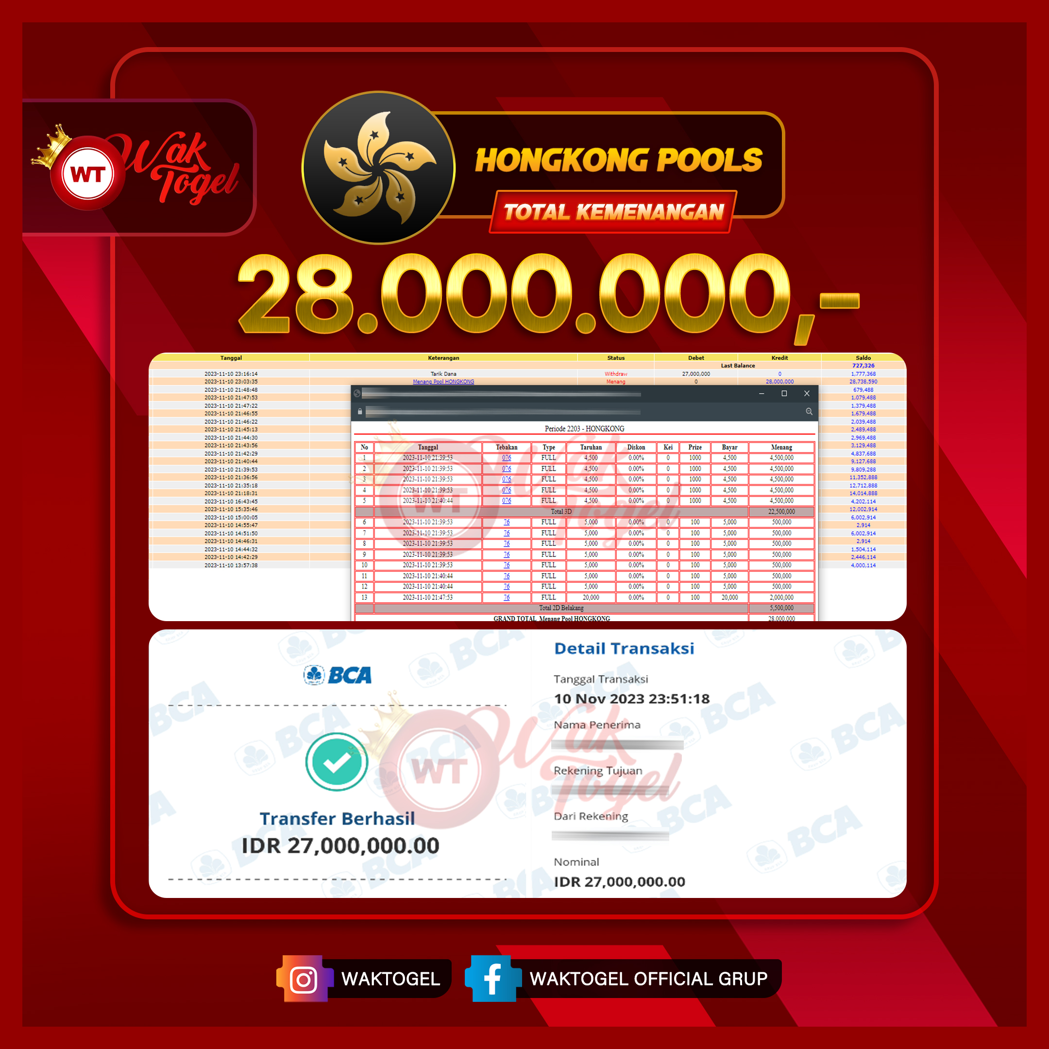 JACKPOT TOGEL WAKTOGEL BUKTI PEMBAYARAN HONGKONG WAKTOGEL By JPWT November 10, 2023 0 comments 2 min read BUKTI PEMBAYARAN HONGKONG WAKTOGEL BUKTI PEMBAYARAN HONGKONG WAKTOGEL RP. 19.000.000 – GAME : TOGEL HONGKONG POOLS TANGGAL (USER ID : N*********8) |10-11-2023| CASH LUNAS ! […]