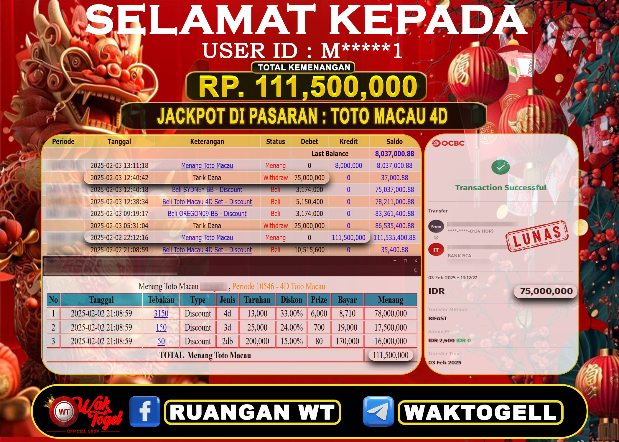 JACKPOT TOGEL WAKTOGEL BUKTI PEMBAYARAN TOTO MACAU 4D WAKTOGEL By JPWT Februari 3, 2025 0 comments 2 min read BUKTI PEMBAYARAN TOTO MACAU 4D WAKTOGEL BUKTI PEMBAYARAN TOTO MACAU 4D WAKTOGEL RP. 111,500,000 – GAME : TOGEL TOTO MACAU 4D (USER ID : M*****1) […]