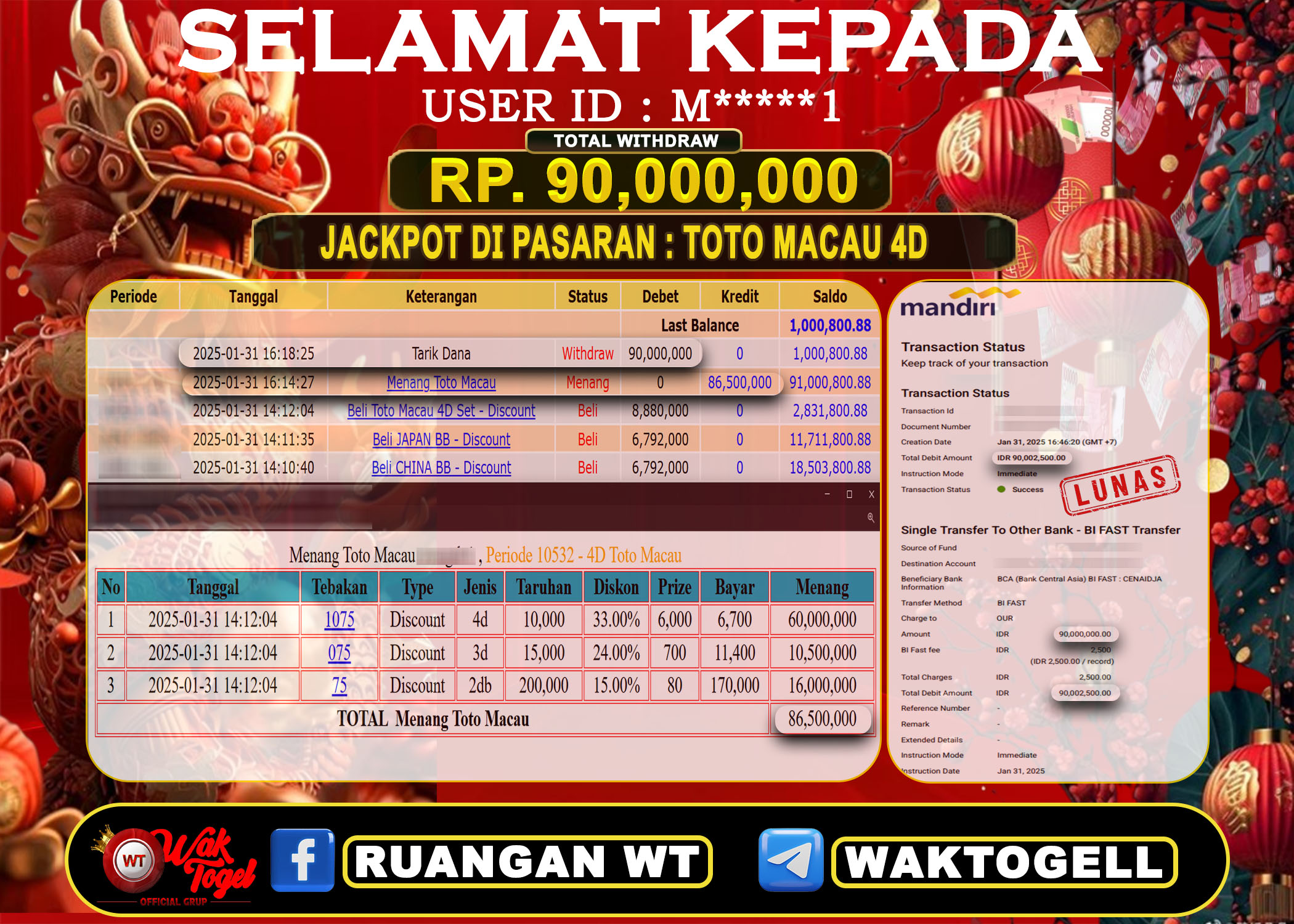 JACKPOT TOGEL WAKTOGEL BUKTI PEMBAYARAN TOTO MACAU 4D WAKTOGEL By JPWT Januari 31, 2025 0 comments 2 min read BUKTI PEMBAYARAN TOTO MACAU 4D WAKTOGEL BUKTI PEMBAYARAN TOTO MACAU 4D WAKTOGEL RP. 90,000,000 – GAME : TOGEL TOTO MACAU 4D (USER ID : M*****1) […]