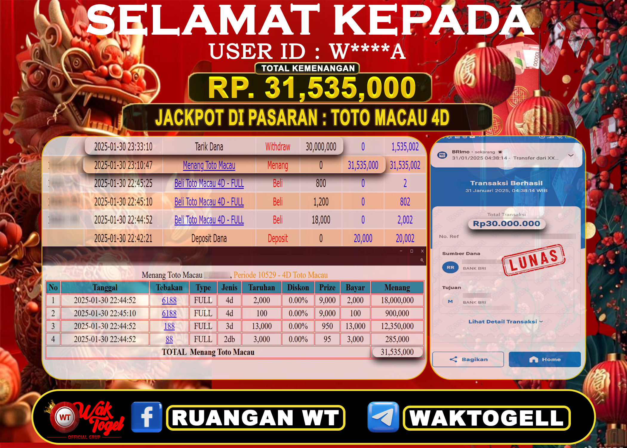 JACKPOT TOGEL WAKTOGEL BUKTI PEMBAYARAN TOTO MACAU 4D WAKTOGEL By JPWT Januari 31, 2025 0 comments 2 min read BUKTI PEMBAYARAN TOTO MACAU 4D WAKTOGEL BUKTI PEMBAYARAN TOTO MACAU 4D WAKTOGEL RP. 31,535,000 – GAME : TOGEL TOTO MACAU 4D (USER ID : W****A) […]