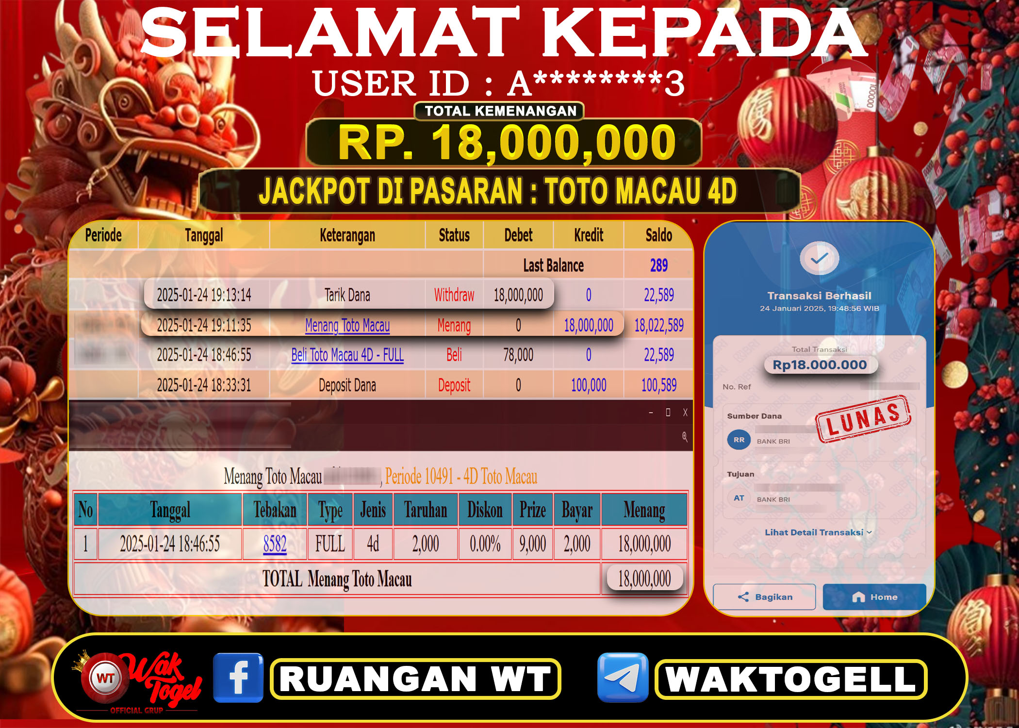 JACKPOT TOGEL WAKTOGEL BUKTI PEMBAYARAN TOTO MACAU 4D WAKTOGEL By JPWT Januari 24, 2025 0 comments 2 min read BUKTI PEMBAYARAN TOTO MACAU 4D WAKTOGEL BUKTI PEMBAYARAN TOTO MACAU 4D WAKTOGEL RP. 18,000,000 – GAME : TOGEL TOTO MACAU 4D (USER ID : A********3) […]